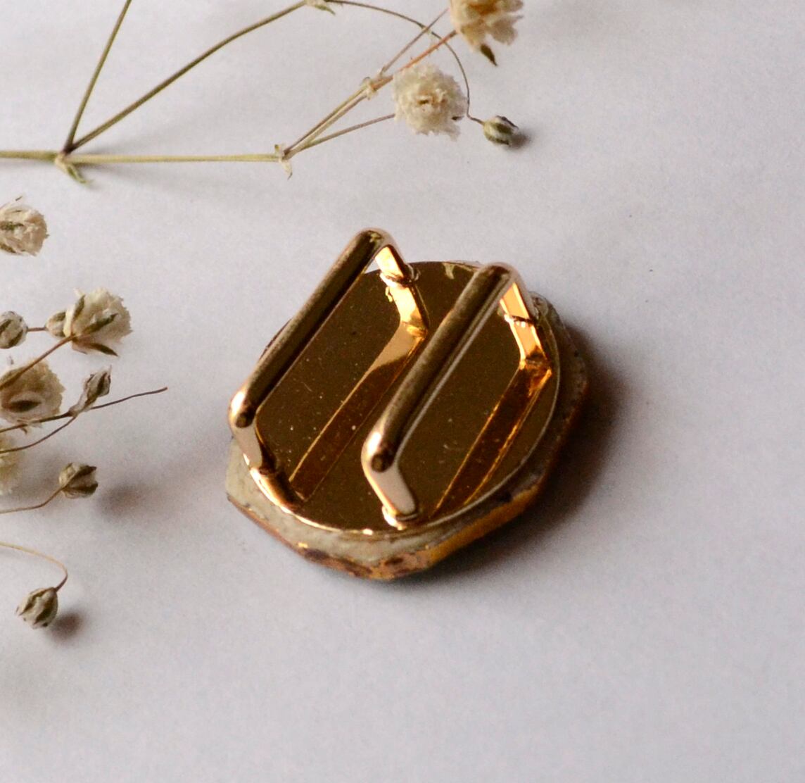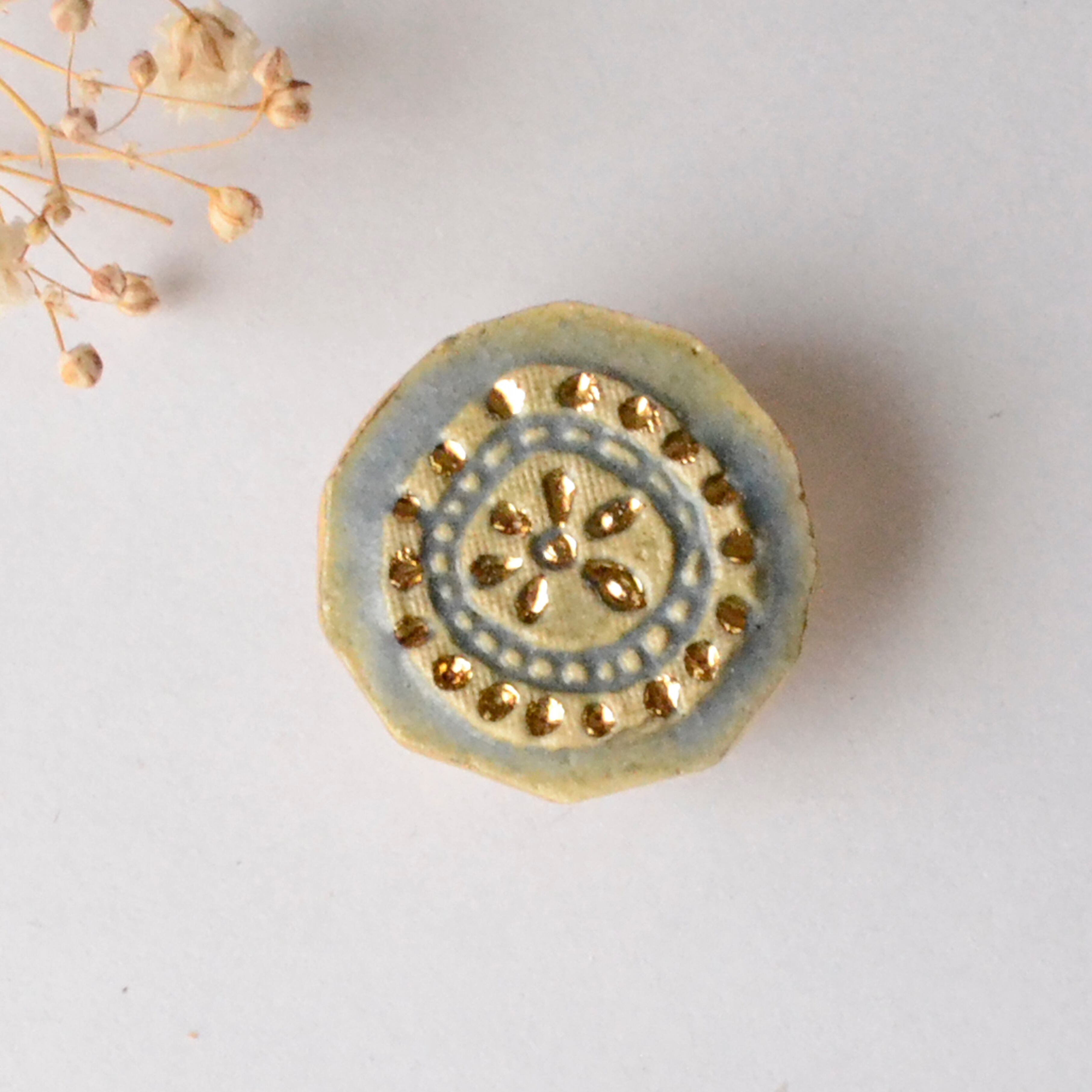 陶の素朴な風合いがあり、優しい雰囲気の帯留め